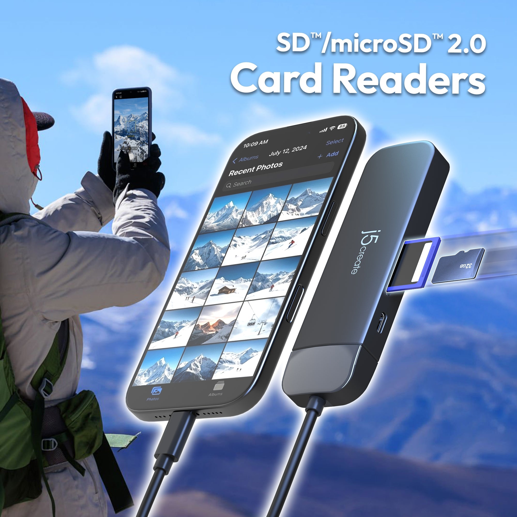 Built-in SD™/microSD™ 2.0 readers for fast, seamless file transfers and quick access to your external memory.