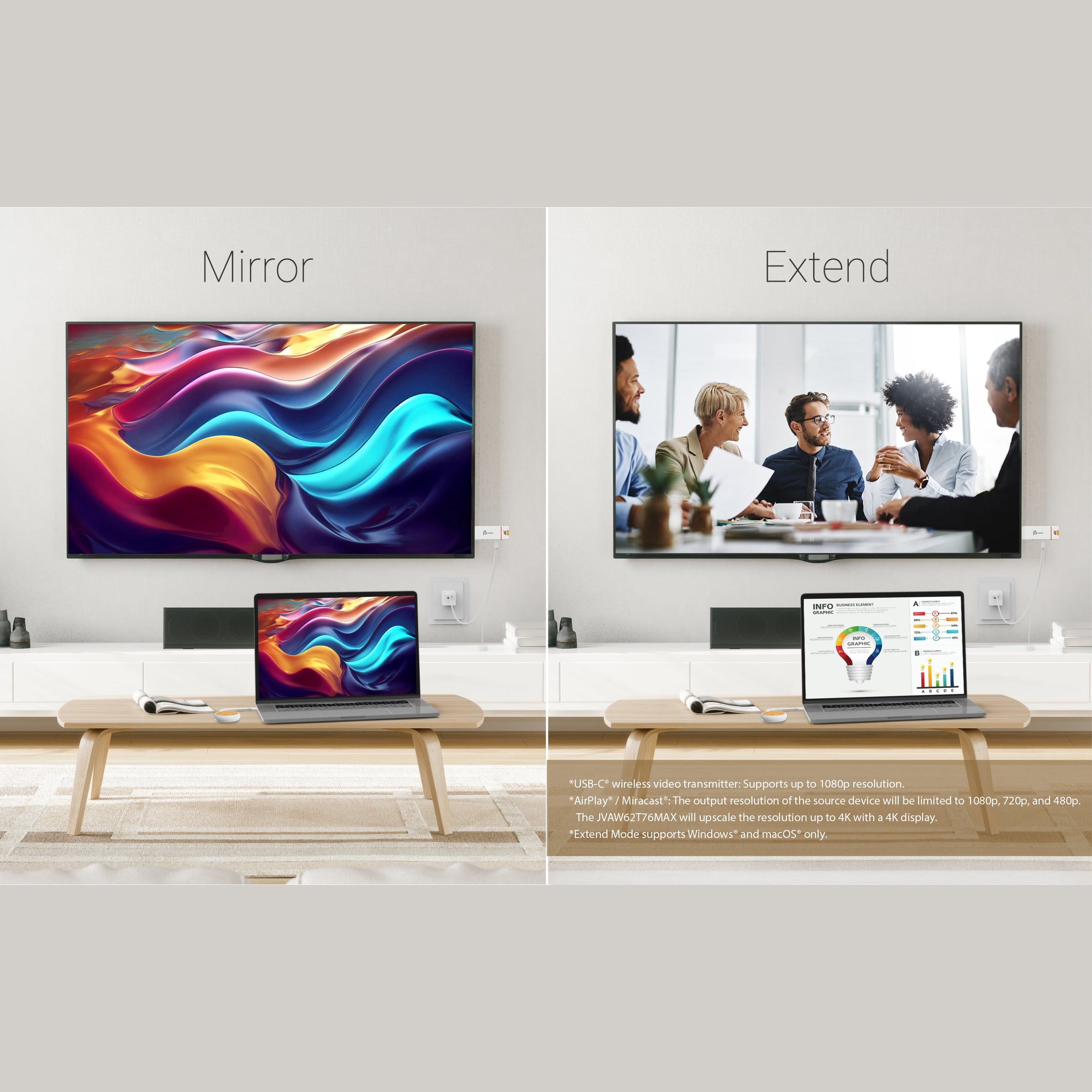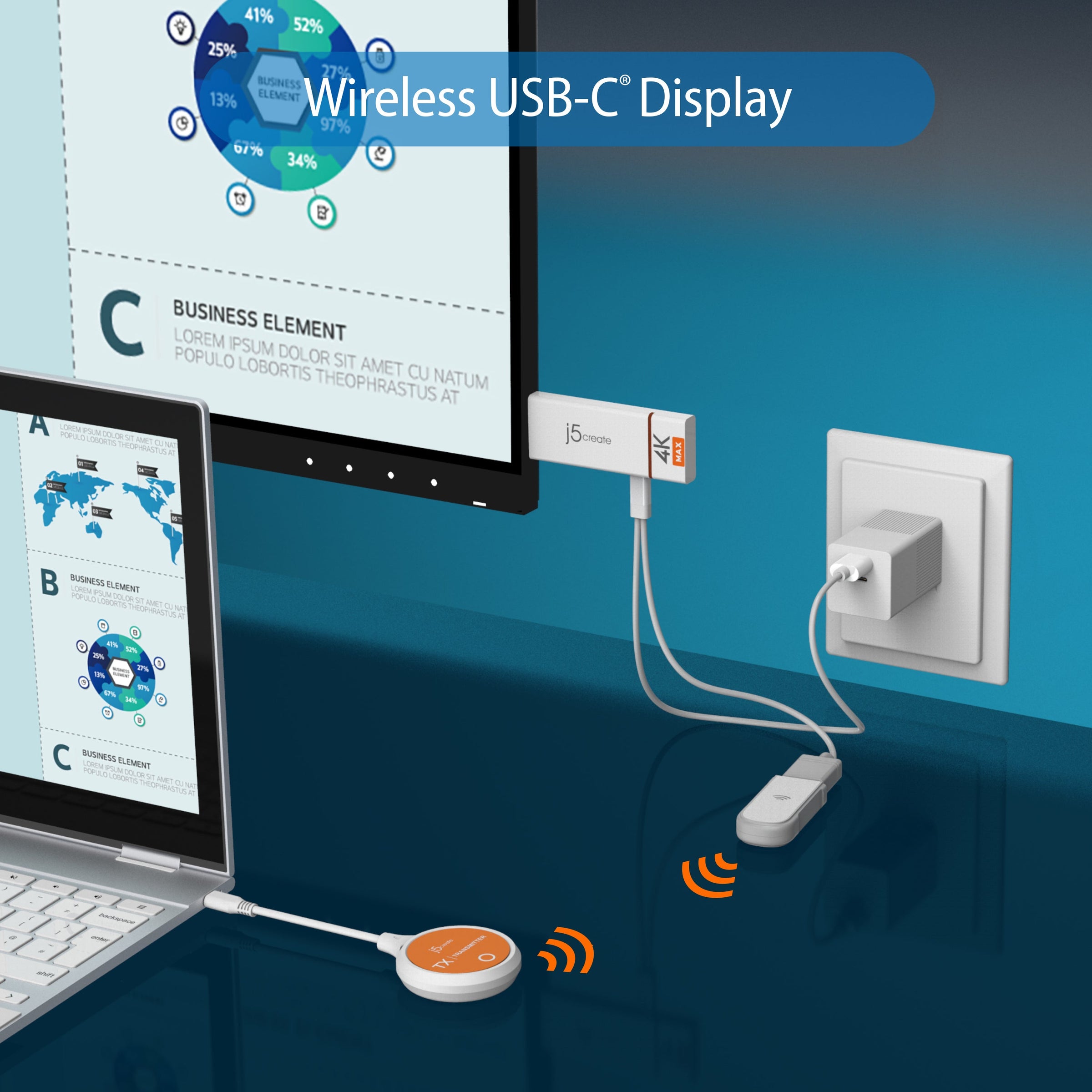 Features a USB-C® wireless video transmitter compatible with wireless display technologies such as AirPlay® and Miracast®.