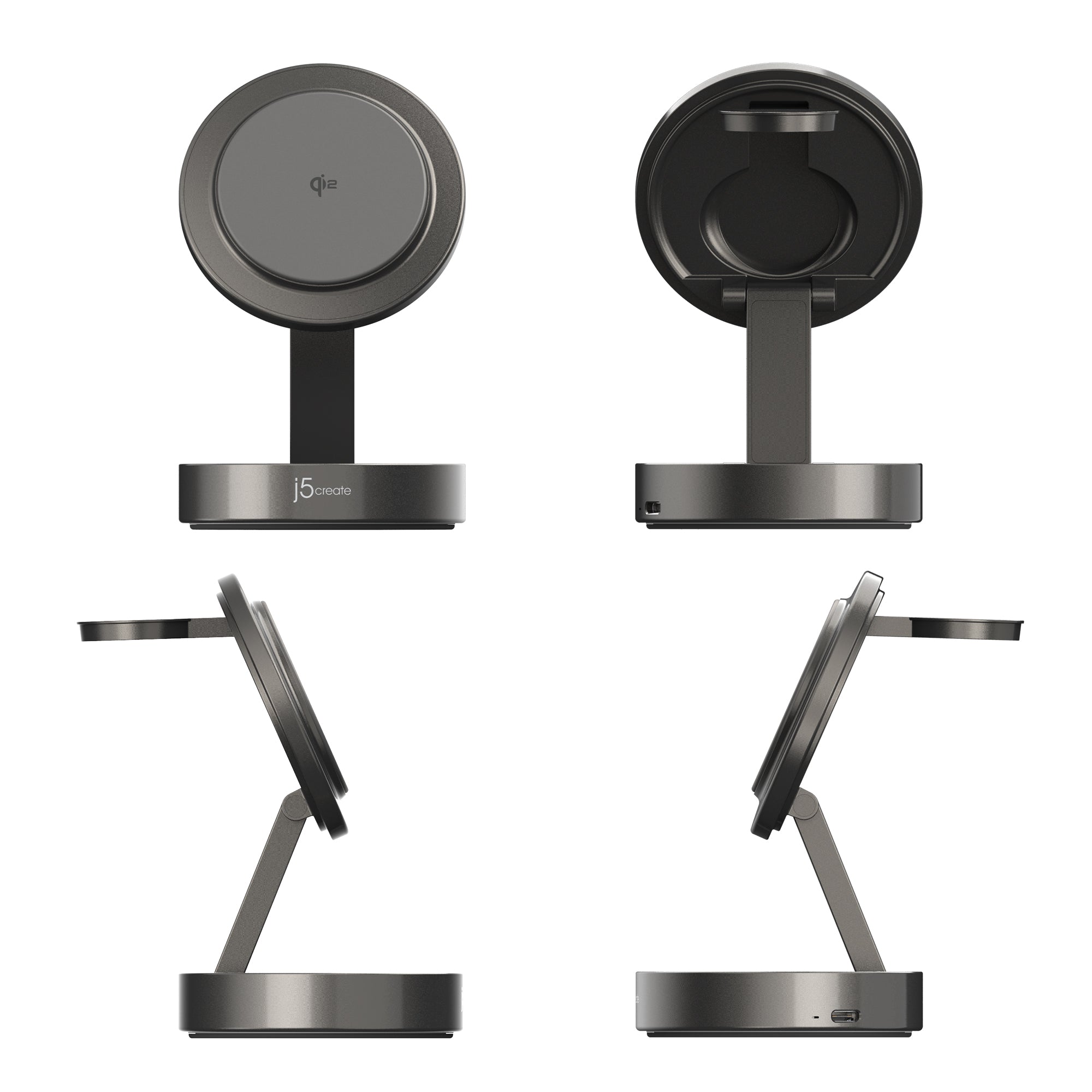 Flip, tilt, and rotate: the wireless pad bends 180°, the Apple Watch® charger elevates beyond 90°, and the base spins 360°- for total positioning control.