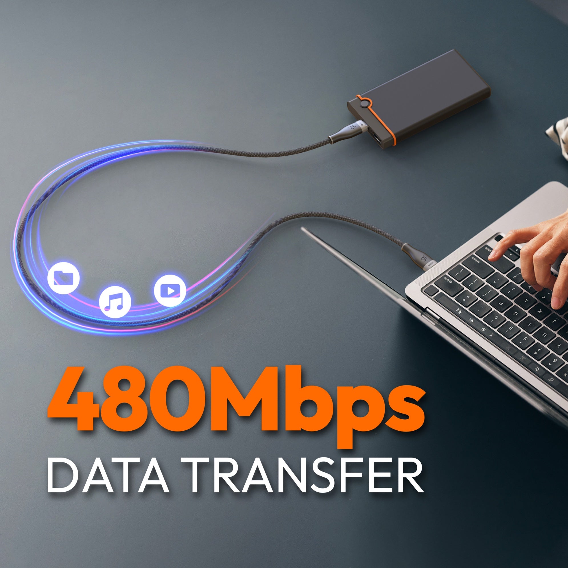 • Supports PD 100W fast charging and 480 Mbps data transfer speeds
