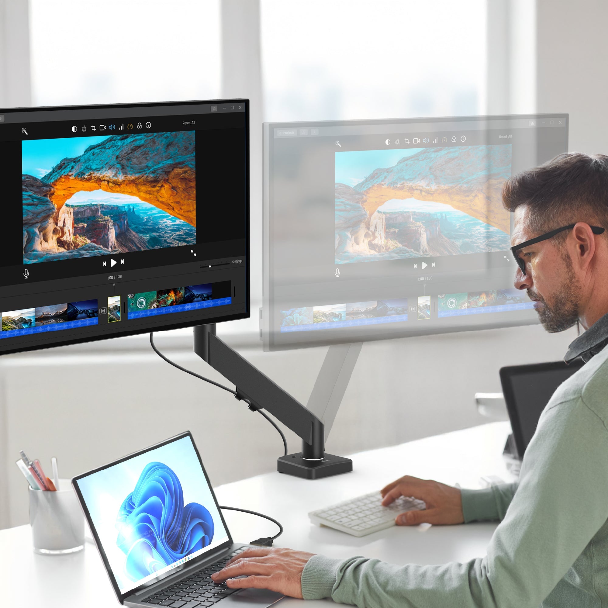 - Fully adjustable gas spring monitor arm. Easily adjust your monitor to any height.
